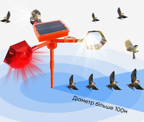 Ефективно відганяє усіх птахів у радіусі до 100 метрів