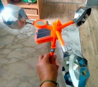 Завдяки обертовій конструкції відлякувач покриває широку зону навколо себе, не залишаючи «сліпих» зон. Рухомі елементи постійно змінюють положення, створюючи динамічний ефект, до якого птахи не звикають. Вбудовані відбивачі світла створюють яскраві спалахи, що додатково відлякують шкідників. Пристрій ефективний навіть на відкритих великих ділянках. Один відлякувач може захистити значну площу без додаткових витрат. Максимальний результат при мінімальних зусиллях.